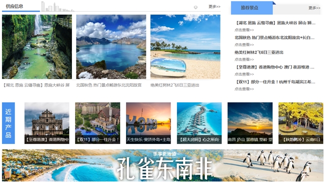 旅游观光产业平台通过整合交通、住宿、景区与本地生活服务资源,构建全链条智慧旅游生态,推动线上线下深度融合。借助大数据分析与人工智能技术,精准匹配用户需求,提升服务响应效率与体验质量。通过开放合作机制,带动中小旅游企业数字化转型,促进产业协同发展,实现资源共享、价值共创。平台涵盖了新闻资讯、供应信息、求购信息、企业名录、招商加盟、行业展会、人才招聘等功能模块,拥有文化与历史旅游、生态与乡村旅游、休闲度假旅游、特种与探险旅游、传统观光旅游产品、新兴旅游业态、旅游住宿业、旅游购物、旅游服务与管理等行业分类,通过互联网技术及服务精细化管理,为商家提供全方位的展示平台,为游客提供无缝衔接的全程体验,成为一站式旅游服务的重要载体。